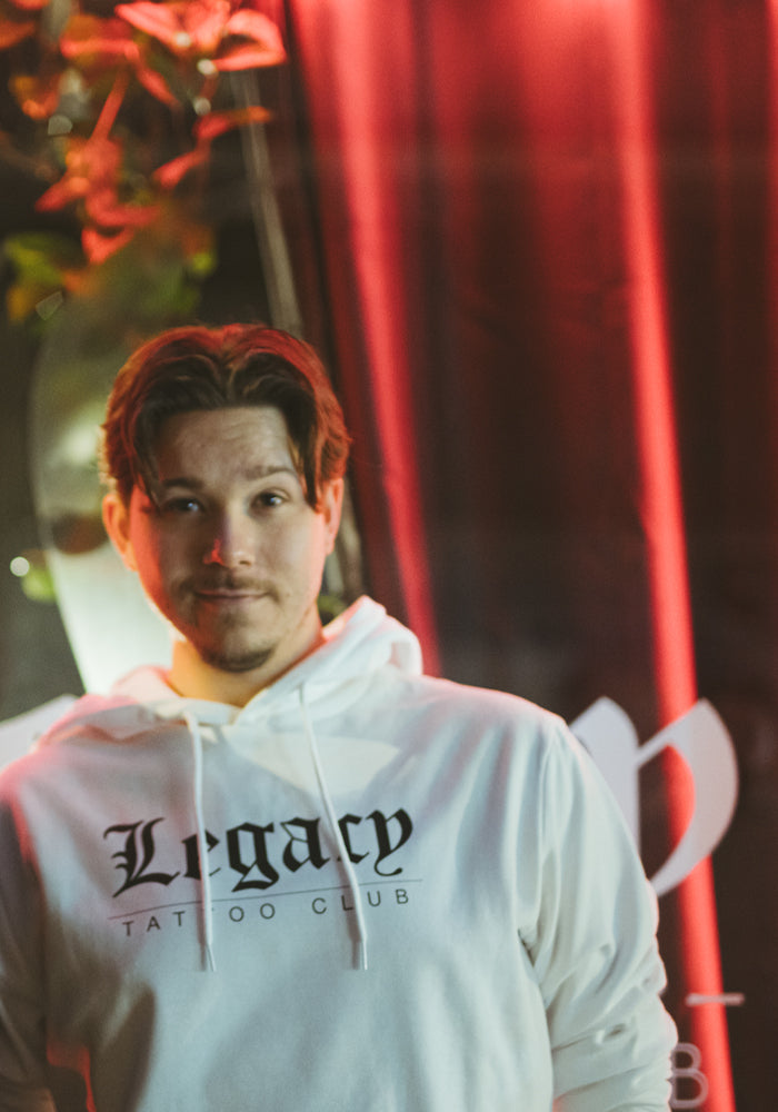 Der Legacy Original Hoodie LEGACY Tattooclub Druck auf der Brust.